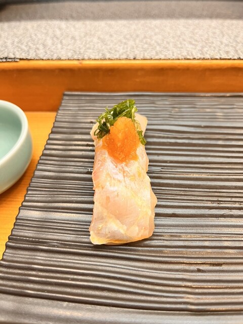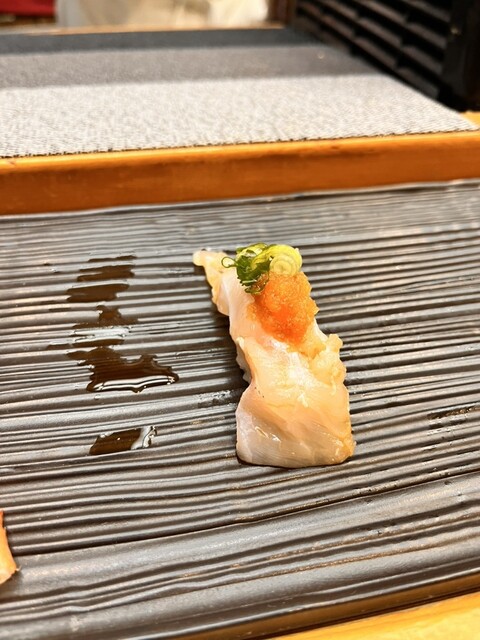 松江の夜、日本海や宍道湖の美味しい魚介が食べたくて、食べログ様のお力をお借りし「呉竹鮨」さんを発見〜予約。 暖簾をくぐり、横長のカウンターで座れたのは、大将らしき方の目の前。ラッキー。まずは握りの前に、酒に合わせてつまみを3皿注文。 ○刺身3種盛 クエ、白イカ、カンパチの3種。クエのさ... 詳細を見る