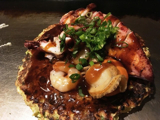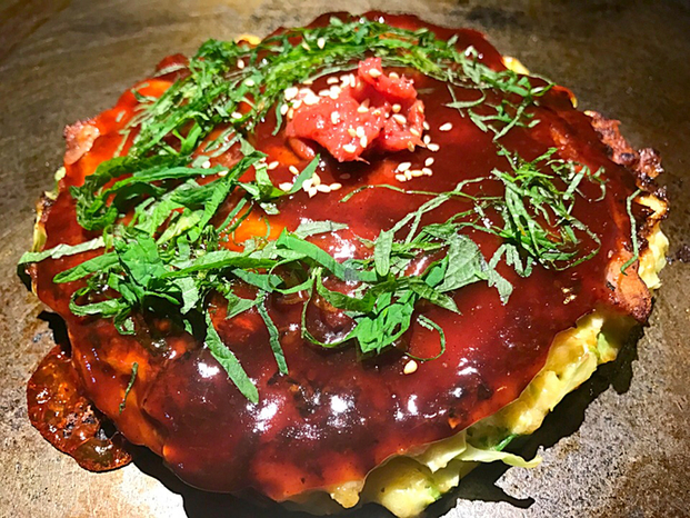 本格お好み焼きとジャンルにとらわれない 鉄板焼きの数々。個室完備の昭和モダンの店内