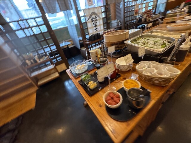 『ホテル アルファーワン出雲』さんの1階にある「山陰漁酒場 丸善水産 出雲店」さんが宿泊者専用朝食会場になっていて、7時頃に到着。(朝食時間は6時30分〜9時30分)