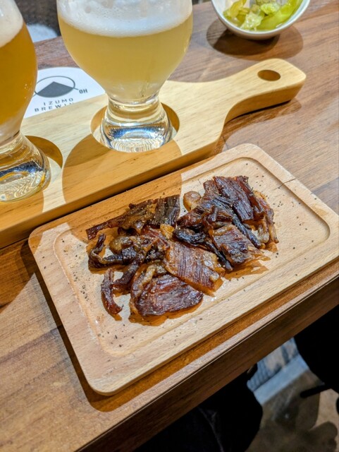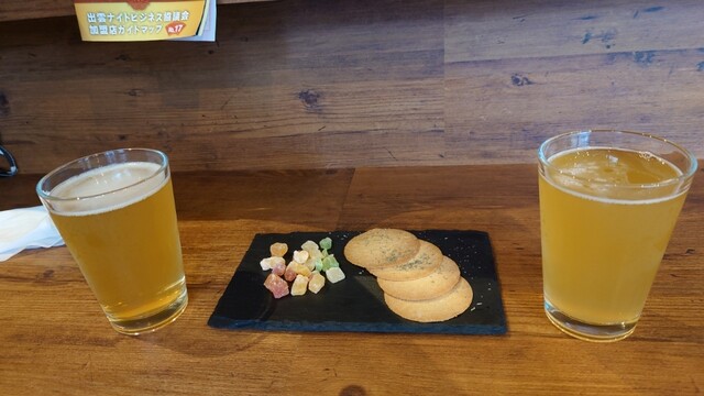 遅くまでやっているブリュワリーありがたい… 出雲で目星をつけていた飲み屋さんもお休みが多かったので、またこちらに伺いました。 今回は飲み比べを。(¥1,500) ... 詳細を見る
