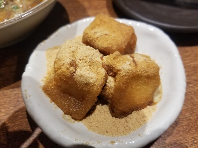 豆富の安倍川(阿部川餅の餅を豆腐に置き換えたバージョン)