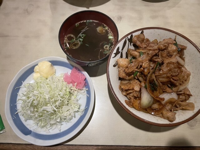 豚丼は野菜たっぷりで、シャキシャキと食べ応えがあります。それほどご飯の量は少なく、具材で5割くらい占めています。