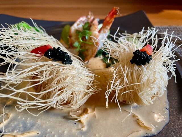 今年の春に来てからもう三回目、、、 美味しくてお洒落で すっかりお気に入りです。 食べログサイトさんから簡単予約して伺いました。 人気なので予約をお勧めです。 今日お願いしたのは ・ホタテのカダイフ包み揚げ ¥3,850(税込) 帆立をカダイフで丁寧にくるんで包み揚げし... 詳細を見る