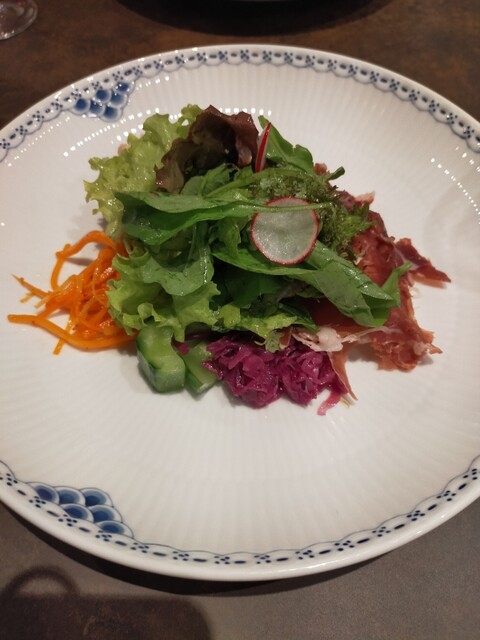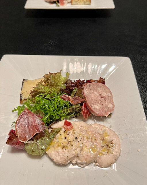 まずは前菜は、サラミ、パテ、じゃがいも、玉子、野菜のなどなど様々なメニューが一皿に乗ってきます。これを食べて料理の期待値が上がりました。特にパ...
