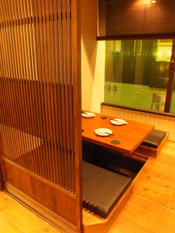 ゆったり足が伸ばせる、掘りごたつ式個室。窓... (by お店)