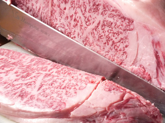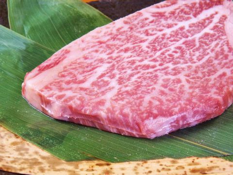 一本買した黒毛和牛サーロインは丁寧に手切り (by お店)