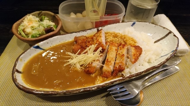 夜は居酒屋のようだが 昼はカレーを提供している。 カツカレーや野菜カレー等、 3種類ほどあったかな。確か。 素朴なお味。 シャバシャバタイプのカレーでした。 ... 詳細を見る