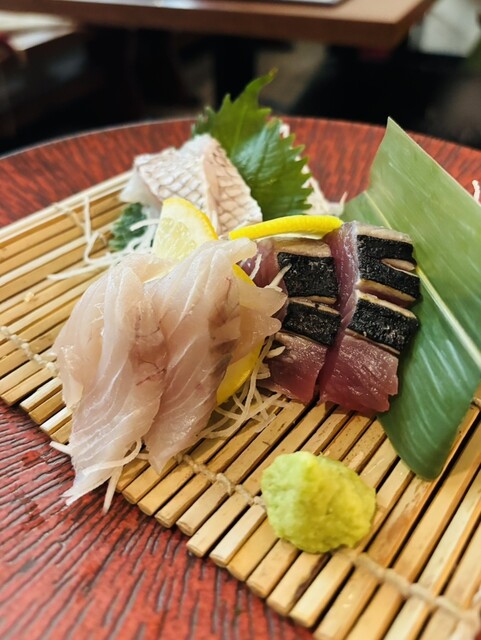 名物の新鮮野菜を豚バラで巻いた炭焼のジューシー巻き串も旨いが、静岡漁港仕入れの鮮魚のお刺身も旨い!!!