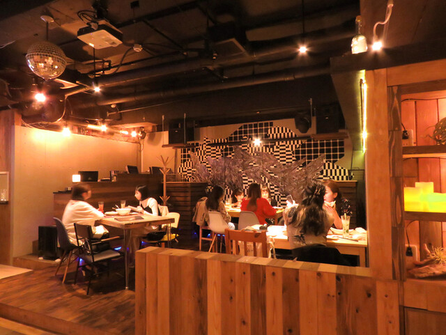 | 空間・設備 | オシャレな空間、落ち着いた空間、席が広い、カップルシートあり、カウンター席あり、ソファー席あり、座敷あり、ダーツあり、スポーツ観戦可、プロジェクターあり、電源あり |