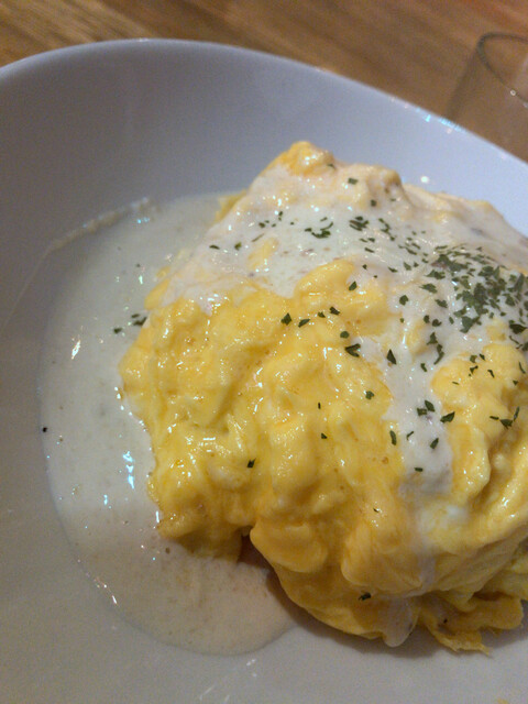 アンチョビクリームソースのオムライスですが、なかなかキレイな見た目をしています。