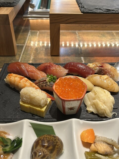 この日は、中トロ、イサキ、鯛?、赤身、エビ、鯵、イカ、ホタテ、玉子、イクラ