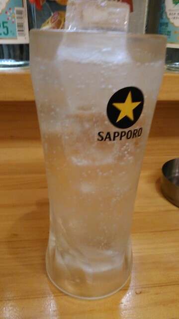 まずはいつものカウンターに立って、チューハイの注文です。