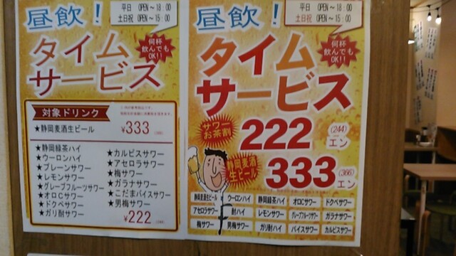 こちらのお店ではタイムサービスをやっていて現在の時間はこのチューハイが税抜き222円です。