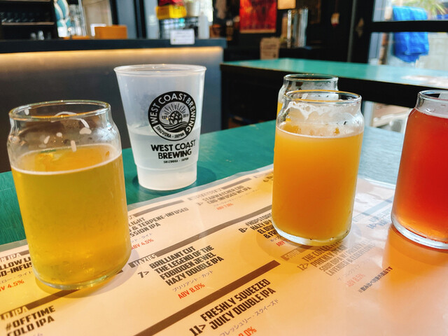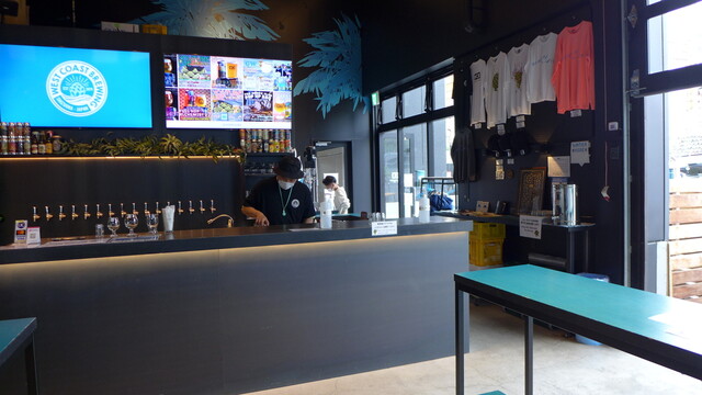 クラフトビールの醸造所『West Coast Brewing』に併設。ガラス越しに醸造風景を眺めながらビールが味わえる、ブルワリー併設のタップルームです。現在、平日は缶商品のテイクアウト販売と屋外テラス席の利用が可能であり、土日祝のみ店内で最大16タップのビールを飲むことが可能。用宗みなと温泉に隣接しているので、観光や温泉と共にぜひお立ち寄りください。