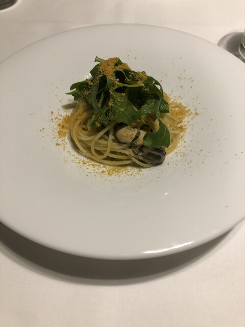 パスタは、カラスミとキノコのパスタと、リングイネ。