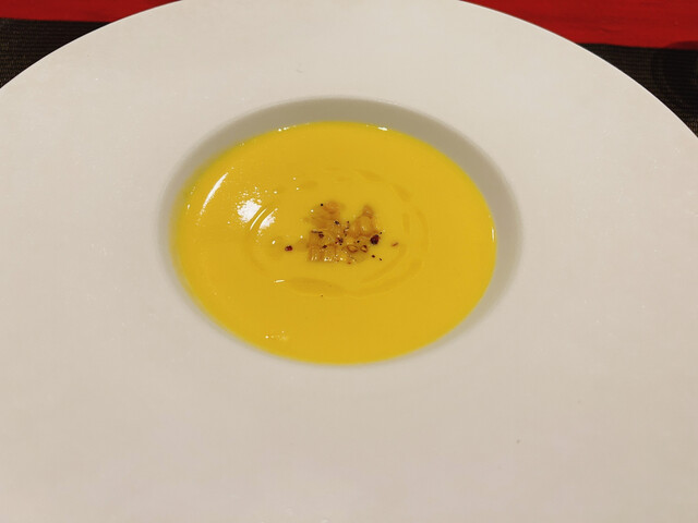 スープはとうもろこしの冷製スープ。
