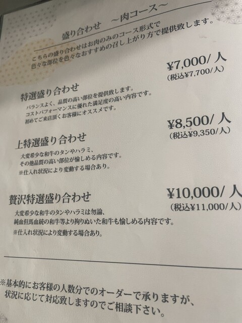 「◇上特選盛り合わせコース◇9350円(税込)《お肉のみのコースとなります》」がおすすめです。