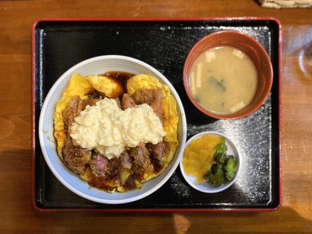 妻がテレビで「とじないカツ丼」を見て食べたいとのことで、静岡駅前に別の店があるのは知っていましたが、妻はレア牛カツも食べたことがないので、それも同時に楽しめるこちらの店にドライブがてら訪問。