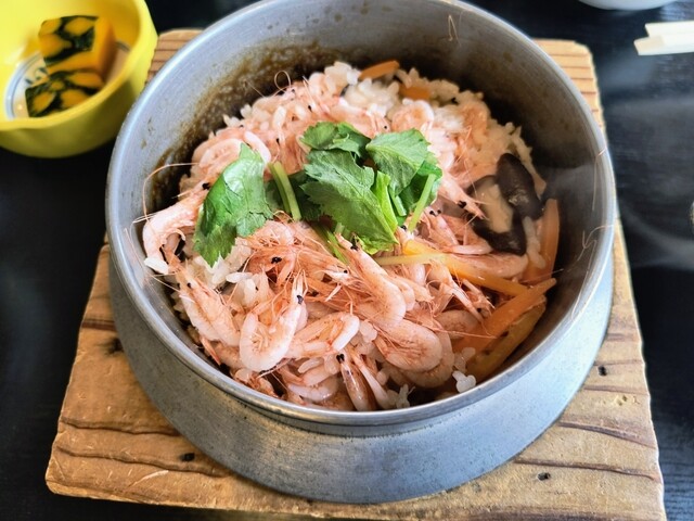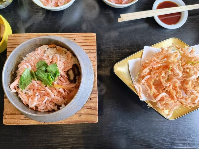 駿河湾を望む絶好の景色を見ながら、由比特産の桜えび料理をご堪能下さい。