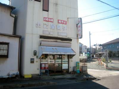 娘と孫を連れて懐かしい山口屋菓子店。孫に遠州焼きを教え込もう。