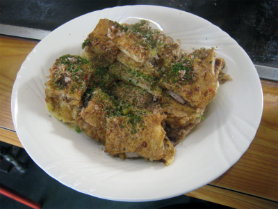 トリイソースを塗り重ねて、3つに折りたたみ一口サイズに切り分け(‾¬‾*)じゅるぅ~