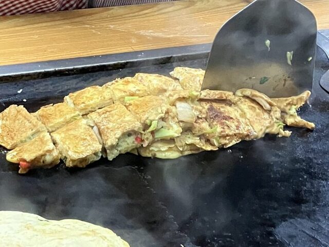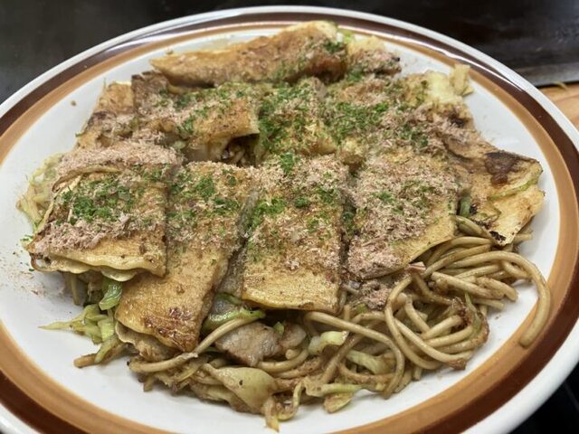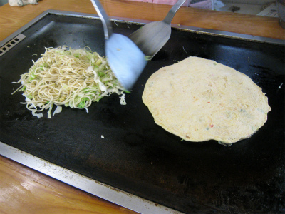 チャンポンは、焼きそばとお好み焼きが合体したもので、...