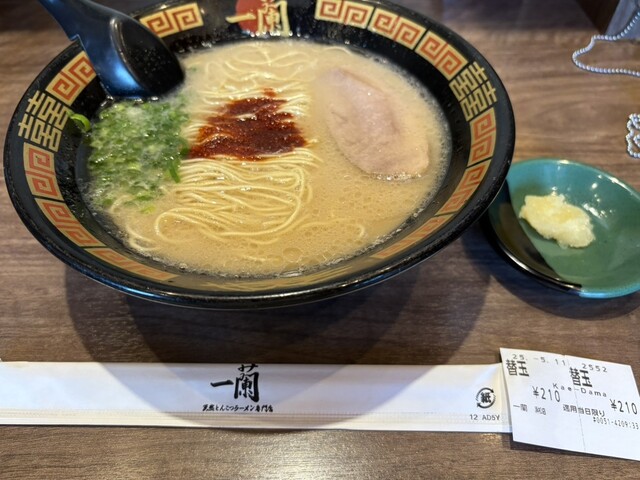 一蘭@静岡県浜松市 「天然とんこつラーメン980円+替玉210円」 混雑状況:先客後客不明、着席率4割程 提供時間:2分(?人オペ) 塩分濃度:1.7% 言わずも... 詳細を見る