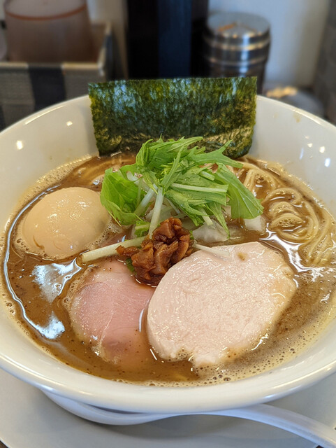 本日はこちらでランチ。 浜北の人気ラーメン屋で、百名店選出歴もあるお店です。平日の11時半過ぎに伺うと、特に並び無くカウンターへ着席。食券制です、こんな感じで購入。 ・バリ... 詳細を見る