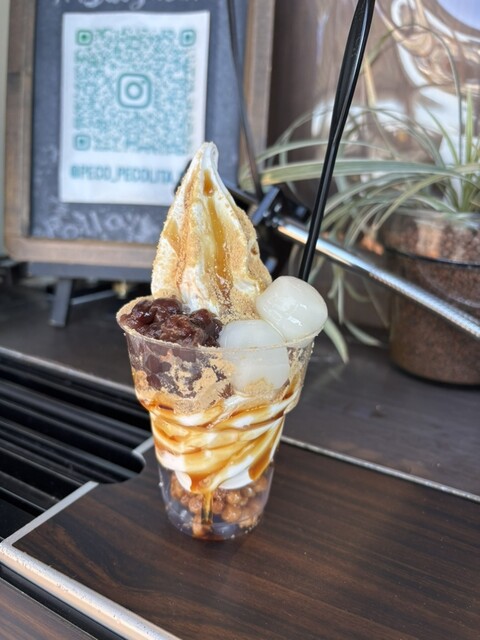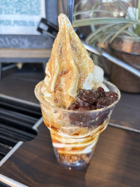 ドッグランで愛犬と遊んだ帰りに立ち寄り、静岡抹茶サンデーをいただきました。手に取った瞬間から抹茶の香りがふわっと広がり、見た目にも抹茶パウダーがたっぷり。ひと口食べるとソフトクリームの優しい甘さと抹茶のほろ苦さが絶妙に合い、白玉とあんこの和の組み合わせがさらに満足感を高めてくれます。ボリュームもありつつ、しつこくないので最後まで美味しく食べられました。屋外でそのまま注文できるのも便利で、愛犬と一緒...