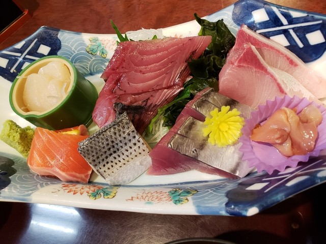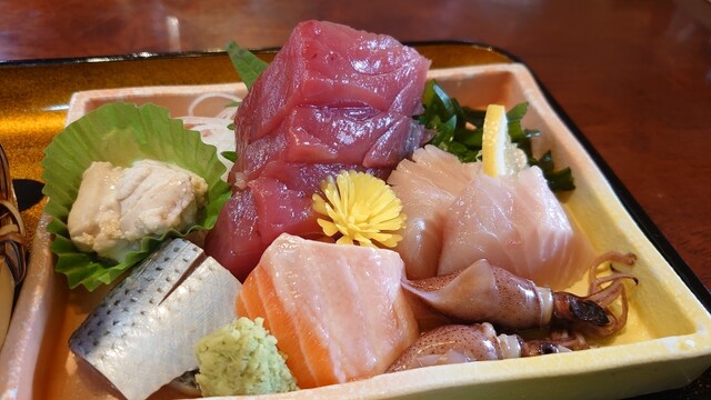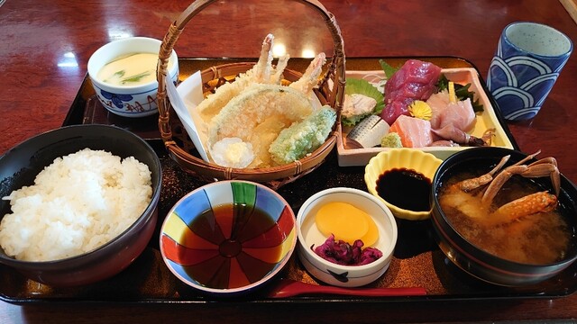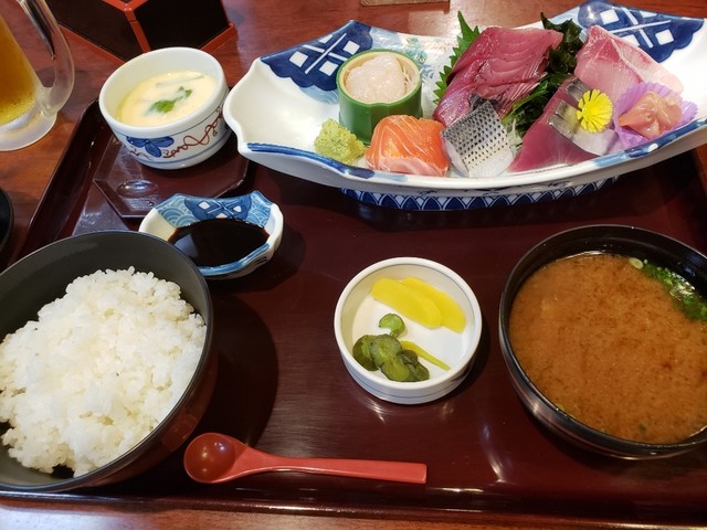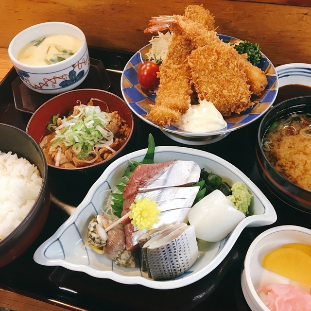 おいしい料理をしっかり食べて頂きたい。が当店のモットーです。 魚、カツ、天ぷら料理を旬のネタでボリューム満点で提供しています。 天ぷらお造り膳がお勧めです。お造り(ブリ、まぐろ等)、天ぷら(エビ、魚、野菜等)、茶わん蒸し、かに汁、香の物、御飯の セットでお召し上がり頂けます。350gのトンカツ定食もあります。 御前崎直送の初がつお入りました。(仕入れ状況によります) 御祝い、御法事の席にもご利用下...さい。