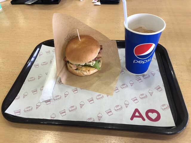 上空には爆弾低気圧が来ているのに、焙煎珈琲と炭焼バーガーAOでソフトクリーム(‾¬‾*)じゅるぅ~