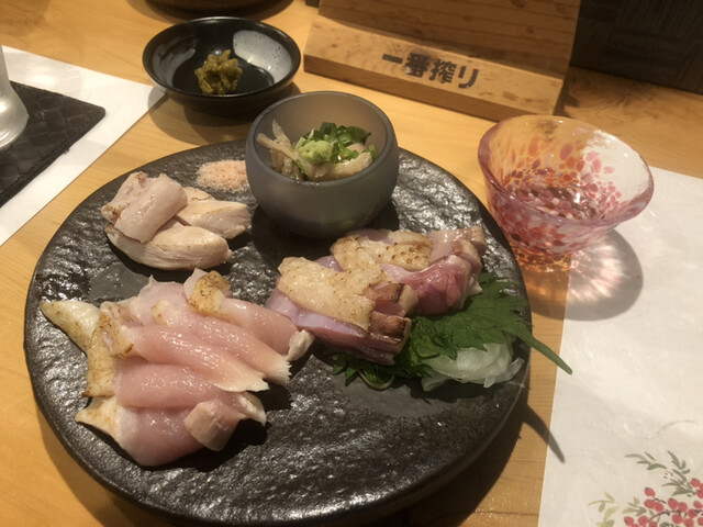 静岡食セレクション認定軍鶏が食べれるお店 頼んだもの ・軍鶏鍋 ・軍鶏のユッケ ・だし巻けない玉子 ・日本酒 開運(掛川)夢仕込み特別本醸造 お通しは揚... 詳細を見る