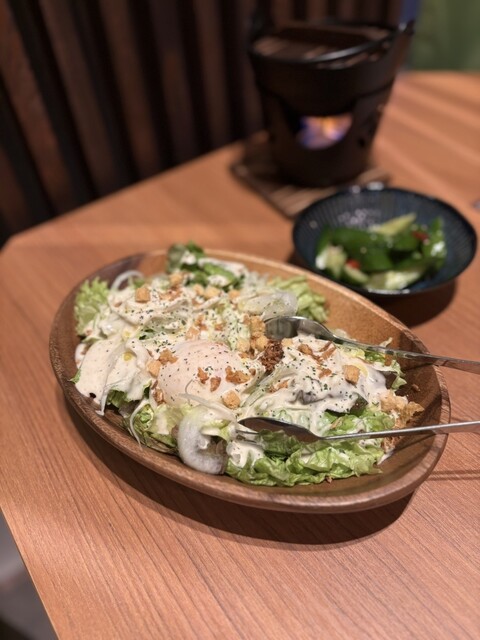 私はシーザーが一番好き!上に温泉卵がのってて、マイルドな味わいです✨