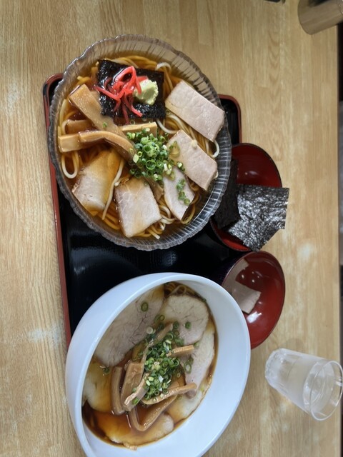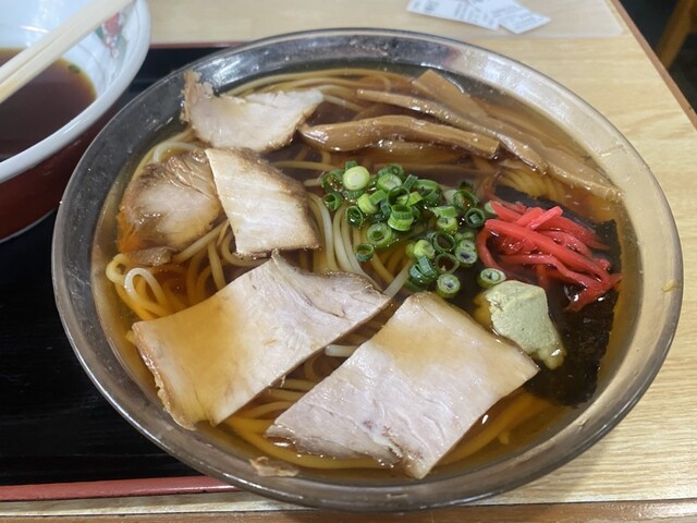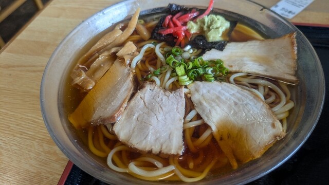 志太系のラーメン。しょうゆ系で出汁がほのかにきいておりスープが甘めです。美味しいです。かつラーメンがあるみたいですが券売機に書いてないのが初めて行く人には不親切だなと思いました。ラーメンより蕎麦屋って...