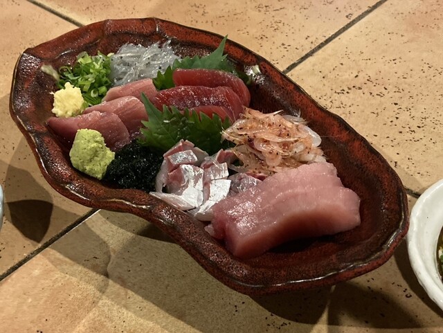 おもひで横丁 藤枝市場@藤枝市にて、馬刺し+ホホホタケホイル焼き+地鯵のフライ+瀬戸谷しいたけステーキ+もつカレー+金子製麺所やきそば 店主は会津出身の元藤枝のサッカー選手という... 詳細を見る