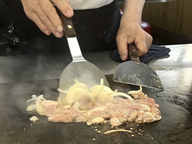 奥の座敷は使っていなかったのもあるが、4人で鉄板の前に座れたのはラッキー。