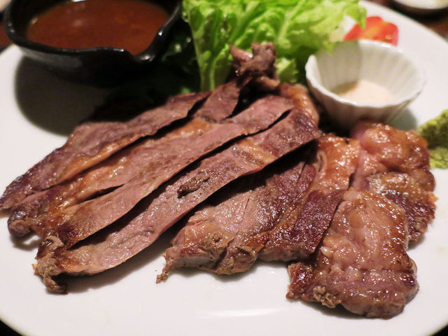 落ち着ける和モダンの居酒屋さんで、秘伝のタレを付けて焼く究極の牛肉が格別
