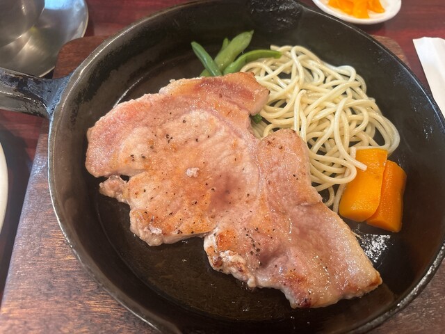 今日はポークステーキ定食:1,480円を注文、なるほどここんちの料理はふらいぱんと言うかスキッ...