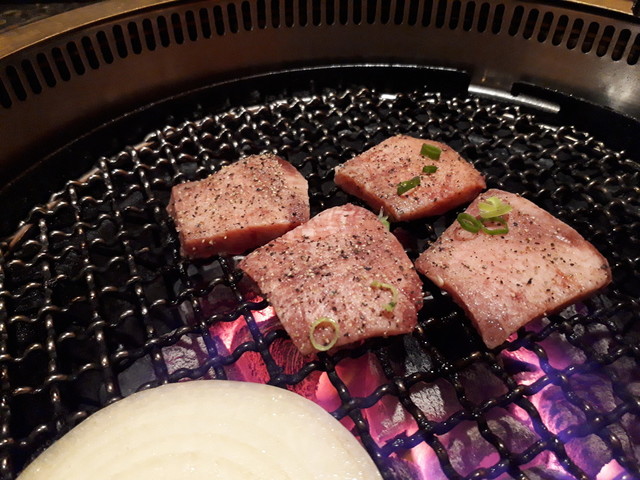 1階はテーブル席、2階は座敷席の大広間の、現地の方の焼肉屋さん。
