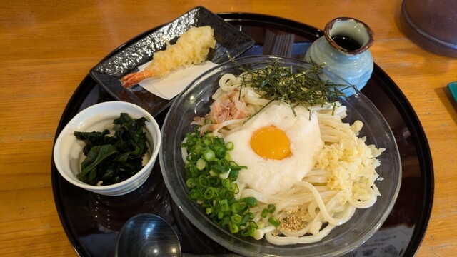 富士駅から市街地と反対の南側へ歩いて10分ほど、富士大橋通り沿いにあるロードサイド型のお店。表の大きな看板には「手作り うどん そば」続いて「とんかつ 天ぷら かつ丼 天丼 ネギト... 詳細を見る