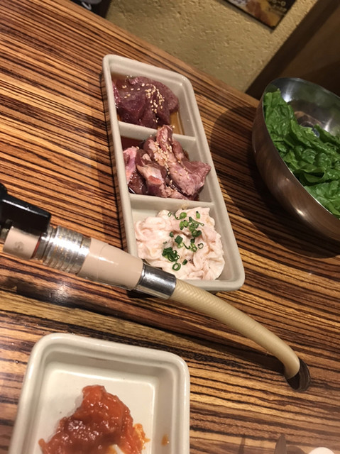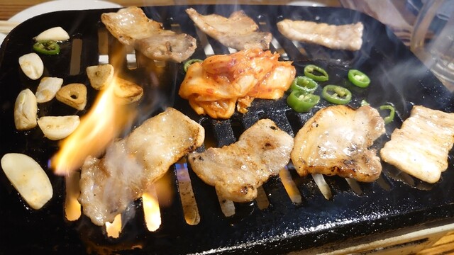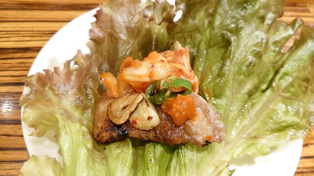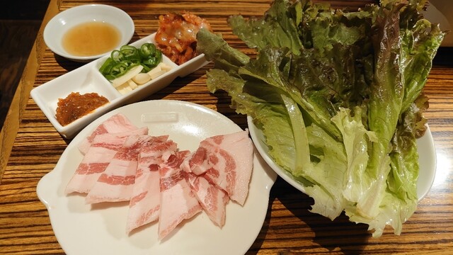 地元ブランド豚「朝露ヨーグル豚」の新鮮なお肉とホルモンなど全16種類の焼肉を最新の排煙システムで洋服などの匂いも気になりません。 その他サラダ・キムチ・サンチュ・揚げ物などのアラカルトも充実しています。