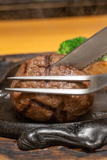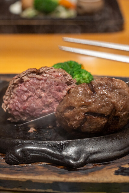 静岡のソウルフードとも言われる人気店で、看板メニューはげんこつハンバーグ(250g)。炭火で表面をこんがり焼き上げ、中は肉汁たっぷりのレア感ある仕上がりが特徴。テーブルで仕上げカットしてくれる演出もあって、食べる前からテンション上がるやつ。