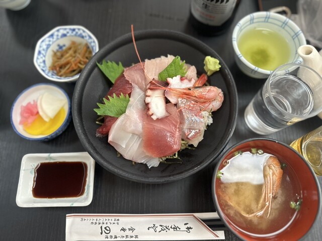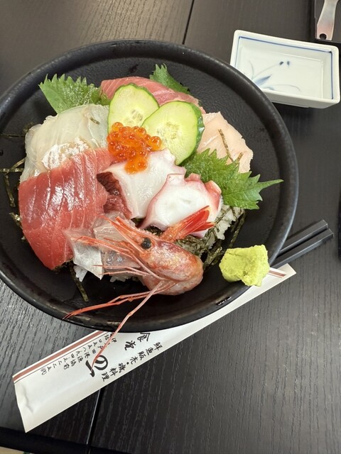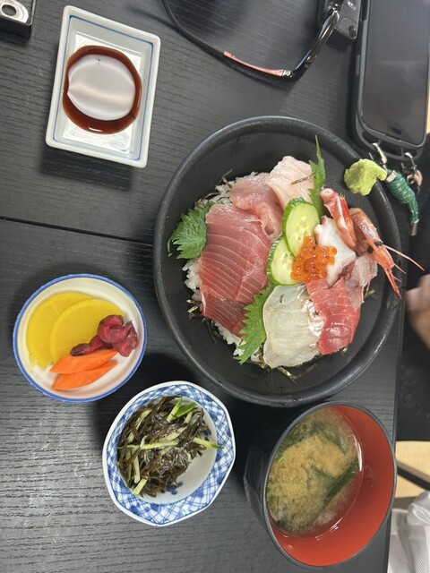 他の方の口コミ見ると朝1番で行かないと厳しいようですね。ないものは仕方ないので普通の海鮮丼を注文...