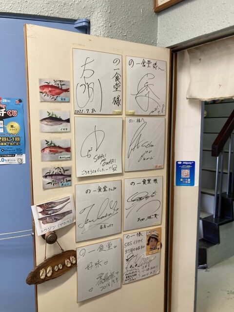 で、通りに出たらの一食堂前に人が並んでいなかったので店前まで行くと買いてある名前...