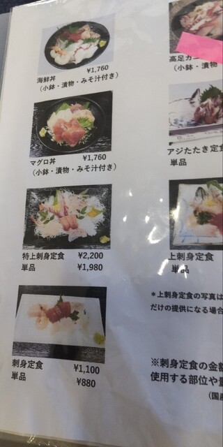 お目当ての高足蟹は残念ながら売り切れでしたので、特上お刺身定食2,200円をいただきました