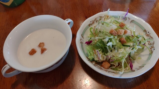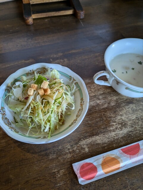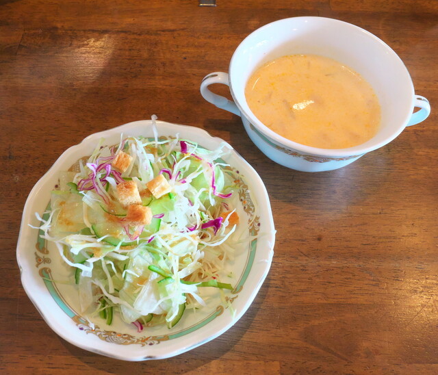 最初なので基本のオリジナルハンバーグ150g を注文します。すぐにミネストローネスープ サラダ がお出ましです