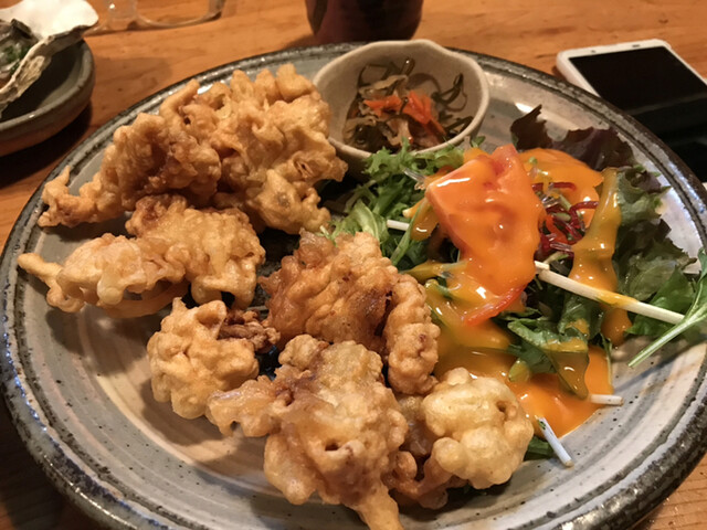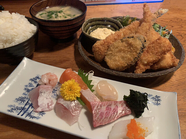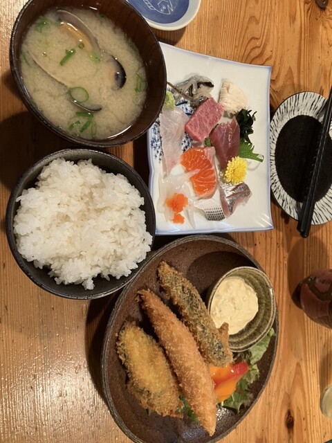 土曜日の昼の開店時間に合わせて2人で利用。 開店と同時に満席に。 私は『生カキポン酢、カキフライ定食』(インスタ情報だと7月までの提供)、もう1人は『刺身盛り、フライ盛り定食』... 詳細を見る