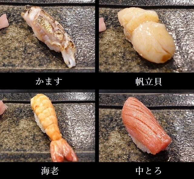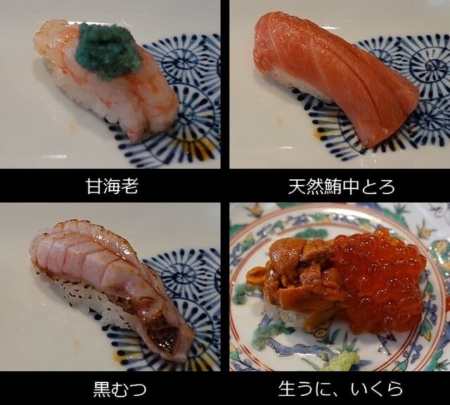 甘海老(兵庫浜坂)、天然鮪中とろ、黒むつ(神津島)