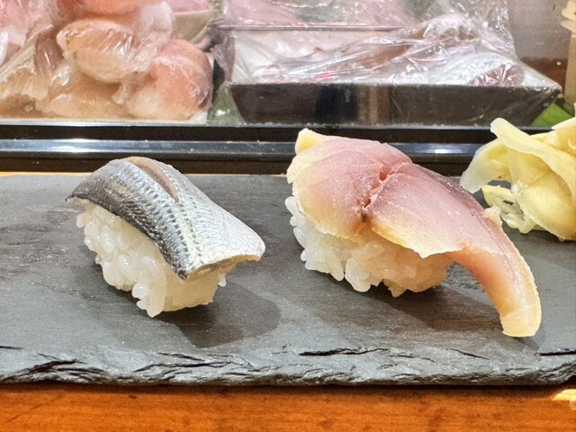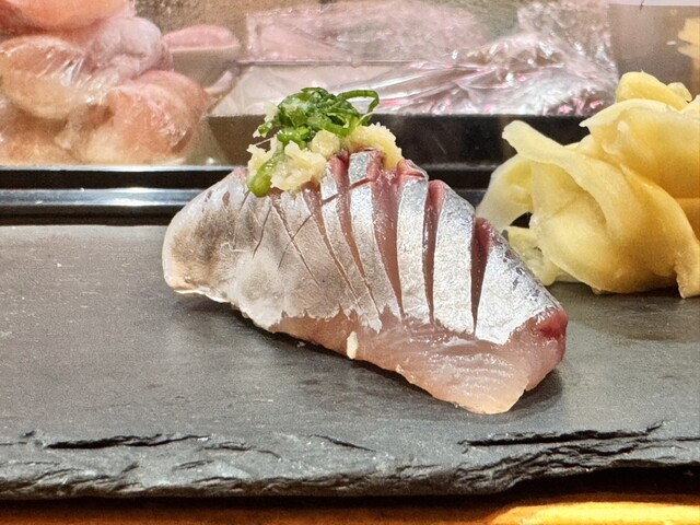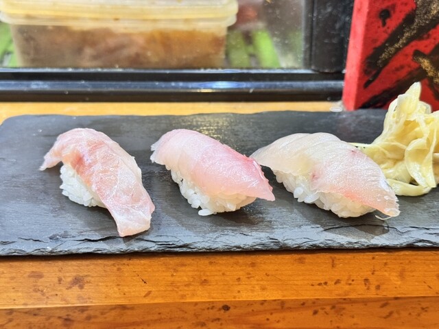 ・とろ、赤身、太刀魚、赤貝、生だこ、金目鯛、シマアジ、鰤の醤油漬け
