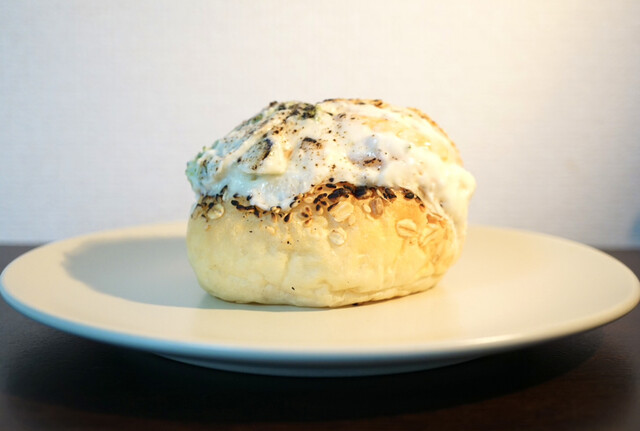 沼津市内の人気ベーカリーです。土曜13時過ぎ、この時間でもパンのバラエティが非常に豊富。オリジナリティがあり、菓子パンから惣菜パン、小さめから大きめまでとにかく幅広いため、かなり迷いました。そんな中でチョイスしたのは以下の3種類…。